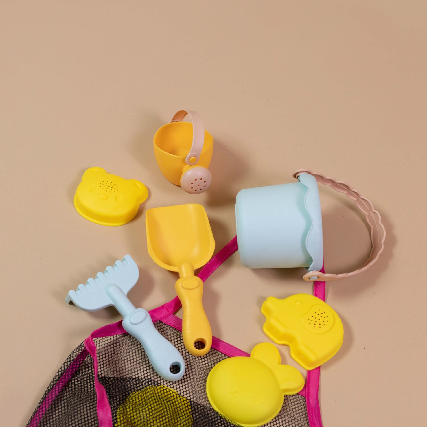 This charming set features brightly colored, child-friendly tools including a bucket, shovel, and rake, plus fun shape molds to create fantastic sand structures. Crafted from safe materials, these toys are easy for small hands to grasp and manipulate. Pack them all neatly into the included mesh bag for easy carrying and quick drying after a day of splashing and building